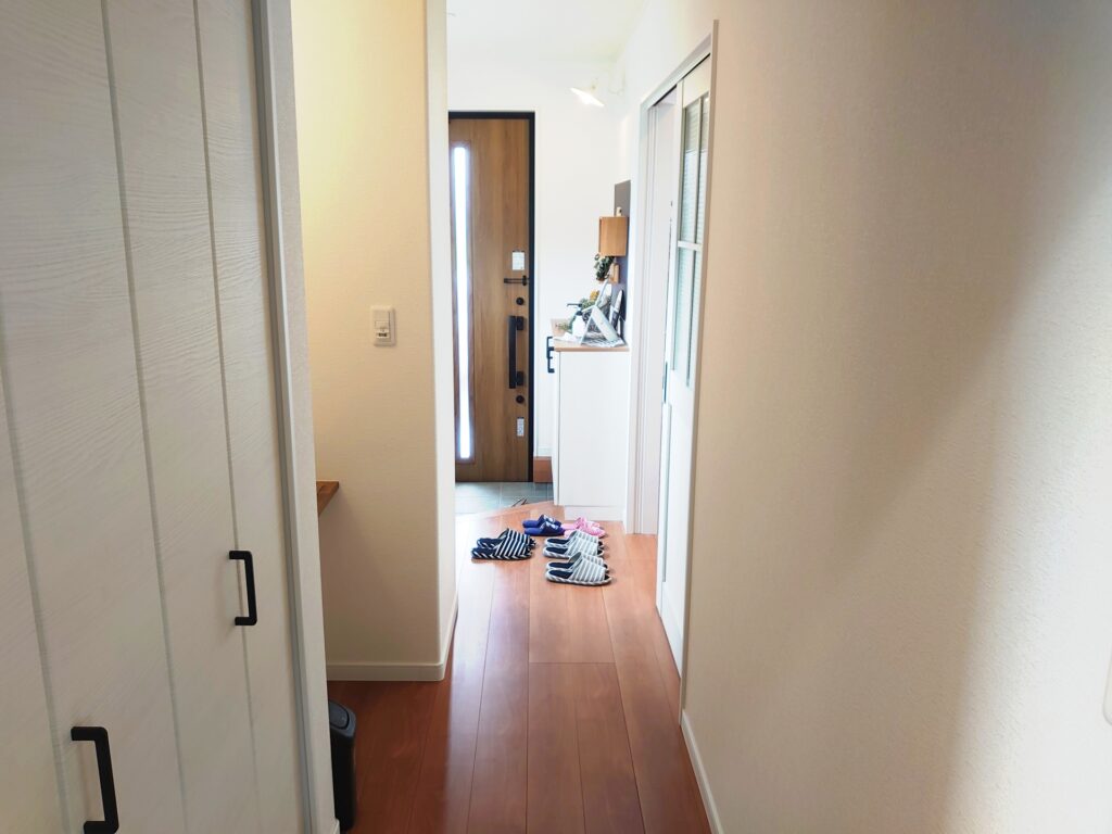 また、廊下との境界線を曖昧にする、あるいは廊下を広めにとることで、玄関から続く空間としての連続性を持たせることも、広々とした印象を与えるための効果的な方法です。
