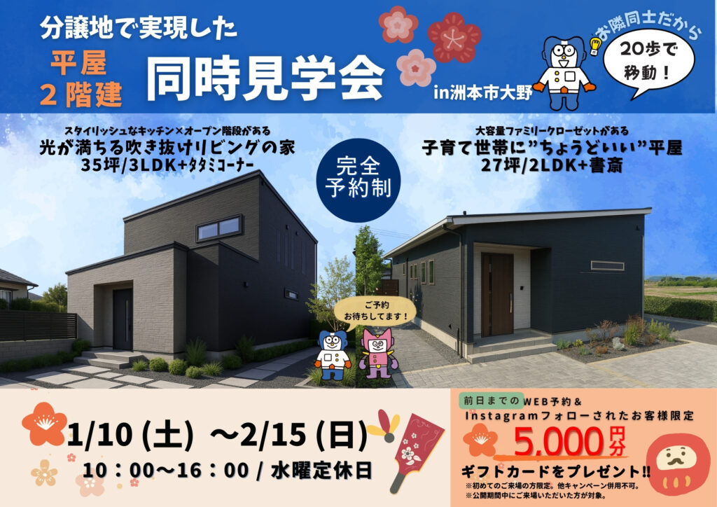 家族の生活に役立つ設計ポイントが詰まった2つのモデルハウスを一度に見学できます。収納や動線など、日常の暮らしを快適にする工夫をリアルに体感してください。