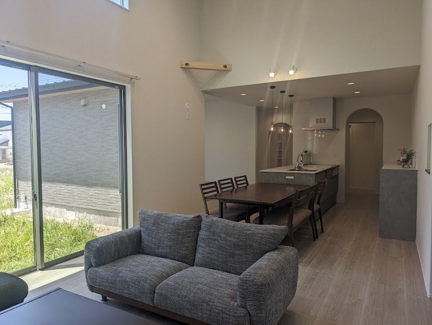 吹き抜けの天井が開放感を演出し、家族の会話も自然と弾む空間です。
